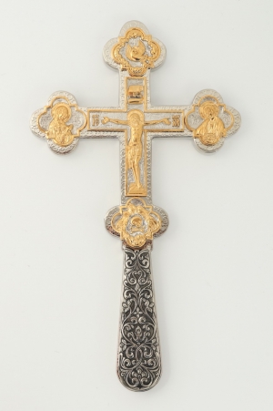 Крест напрестольный №4 6-финифтей, филигрань, эмаль, хим.гравировка / золочение