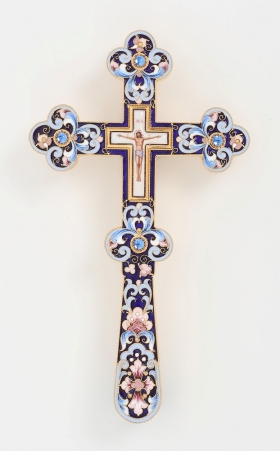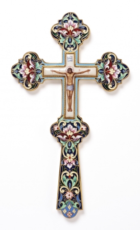 Крест напрестольный фигурный финифть, эмаль / золочение