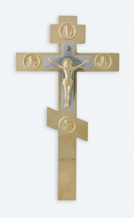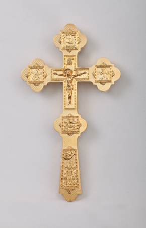 Крест напрестольный №6-20 сложный малый с литыми накладками золочение