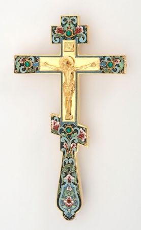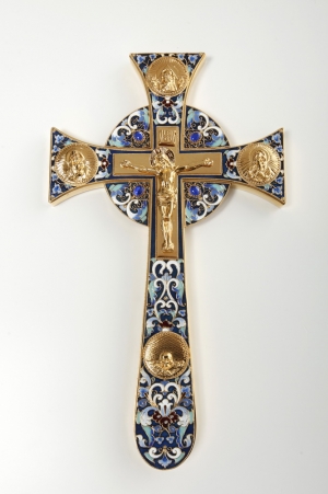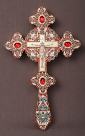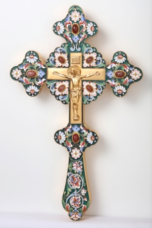Крест напрестольный водосвятный филигрань, эмаль, роспись, финифть / золочение