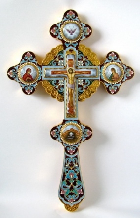 Крест напрестольный филигрань, эмаль, роспись, финифть / золочение