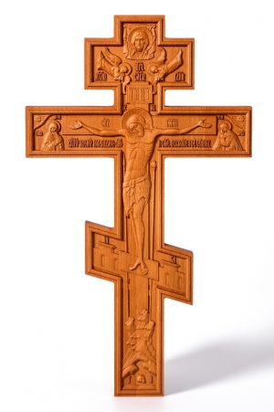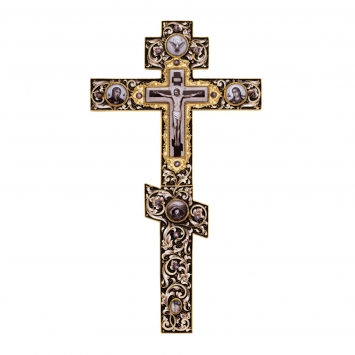 Крест напрестольный №3 лики, распятие, филигрань, эмаль, роспись, хим.гравировка / золочение