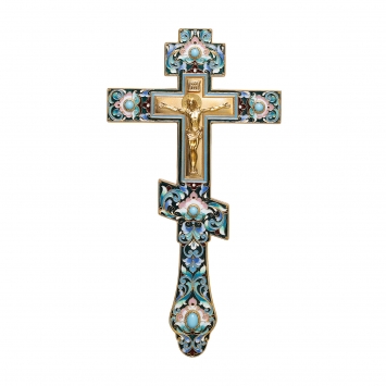 Крест напрестольный филигрань, эмаль, роспись, 5-финифтей / золочение