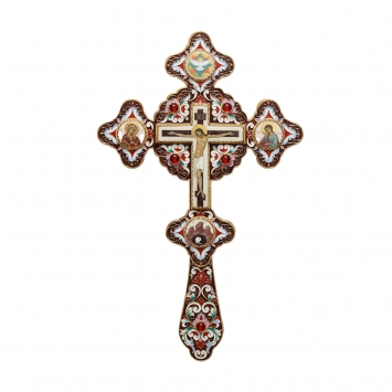 Крест напрестольный филигрань, эмаль, роспись, литьевое распятие / золочение