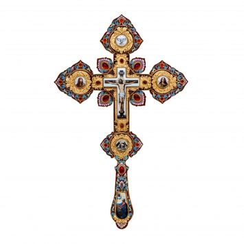Крест напрестольный фигурный 5-живописей, эмаль / золочение