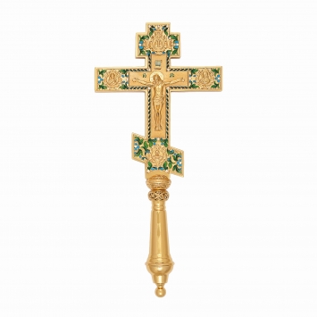 Крест напрестольный №7 литьевые лики, распятие, филигрань, эмаль, хим.гравировка / золочение