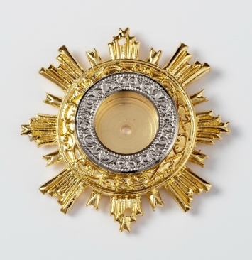 Ковчег для частиц святых мощей круглый малый золочение никель камни