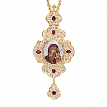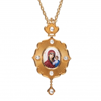 Панагия №1415 / Фианиты деколь, эмаль / золочение / Казанская БМ