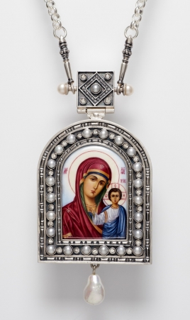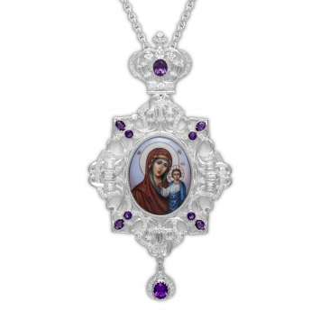 Панагия №1407 / Фианиты / серебрение / Казанская БМ