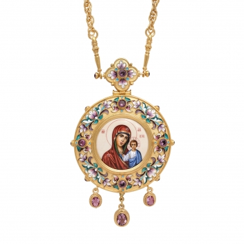 Панагия филигрань №0010 двойной рант финифть / золочение, серебрение / Казанская БМ