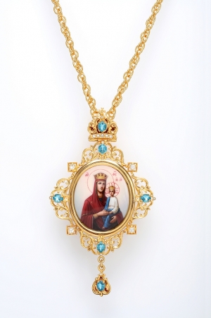 Панагия №1561 / Фианиты деколь / золочение / Владимирская