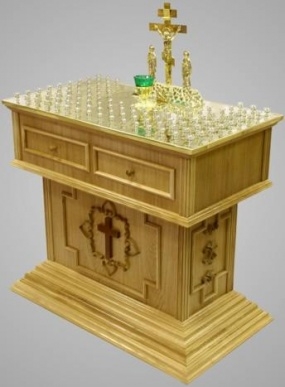 Панихидный стол на 42 свечи с дверцей, полкой и резьбой на Ротанге