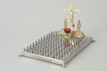 Стол панихидный №25 на 44 свечи на деревянном каркасе серебрение чернение эмаль