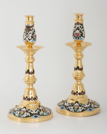 Подсвечник ручной №3 филигрань, эмаль / золочение