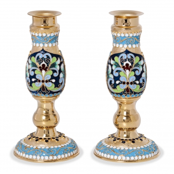 Подсвечник №14 / 2 свечи / эмаль, 6-деколей / золочение