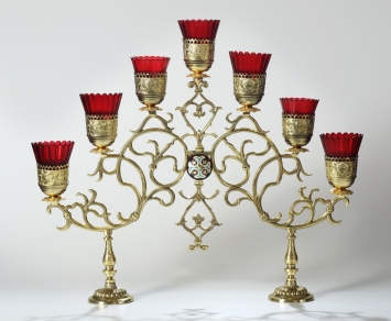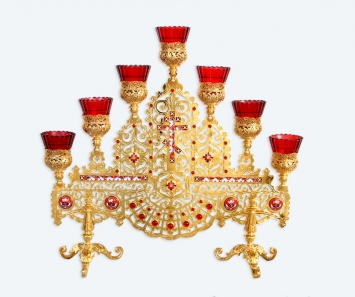 Семисвечник напрестольный №2 золочение эмаль камни