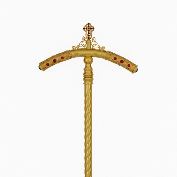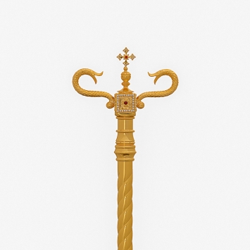 Жезл архиерейский с литым оглавием №5 золочение никель в футляре