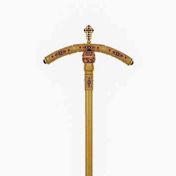 Посох №23 неразборный филигрань, эмаль с фигурным окончанием №1 / золочение