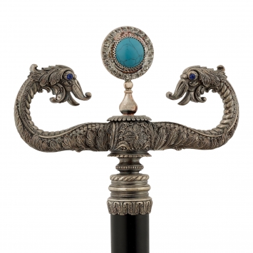 Посох №25 неразборный чеканный с фигурным окончанием №2 / серебрение