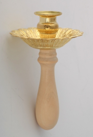 Подсвечник ручной для служебной свечи, латунь, дерево