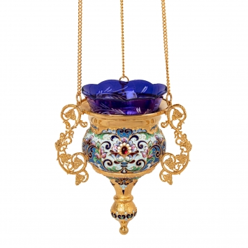 Лампада филигранная греческая с росписью большая / золочение