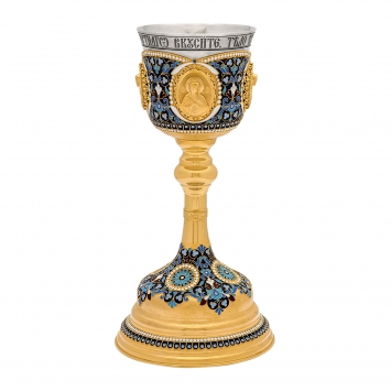 Потир 1.0л 4-литьевых лика, филигрань, эмаль / песочные часы / золочение / мельхиоровый стакан