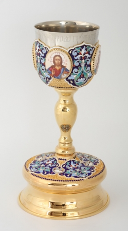 Потир 0.75л 4-финифти, филигрань, эмаль / поддон старого образца / золочение / нержавеющий стакан