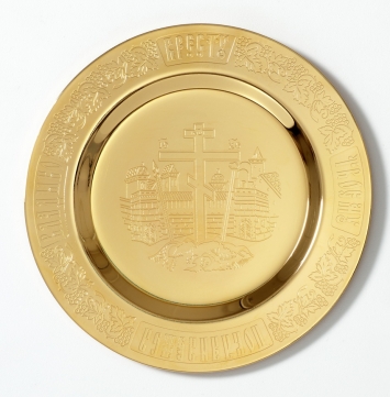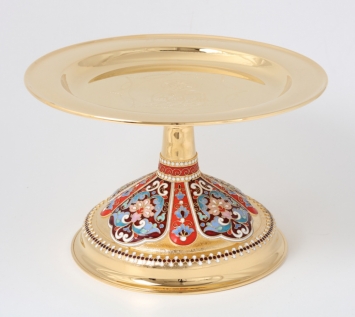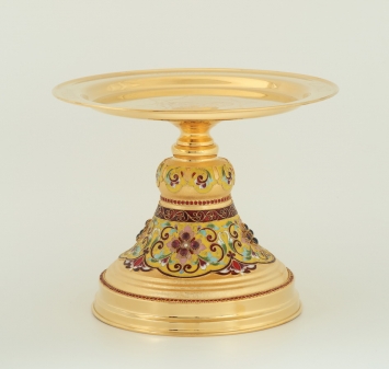Дискос с поддискосником / ф280мм-конус потира 2,0л / филигрань, эмаль, ручная гравировка / золочение
