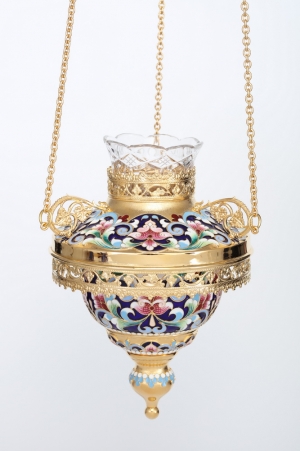 Крест напрестольный №7 5-финифти, филигрань, эмаль, хим.гравировка / золочение