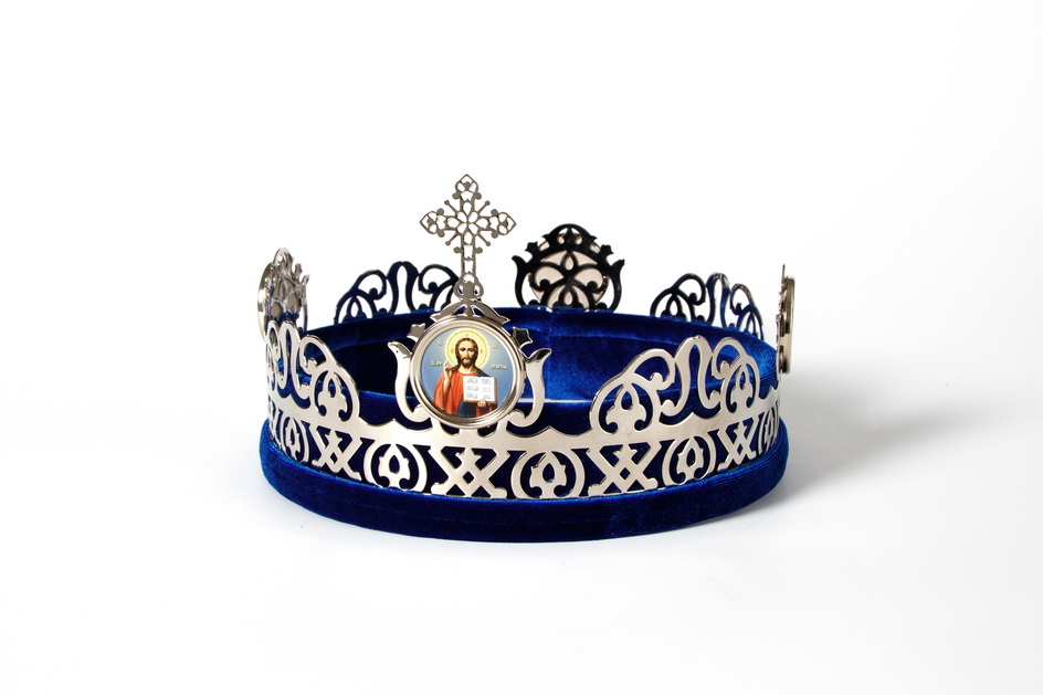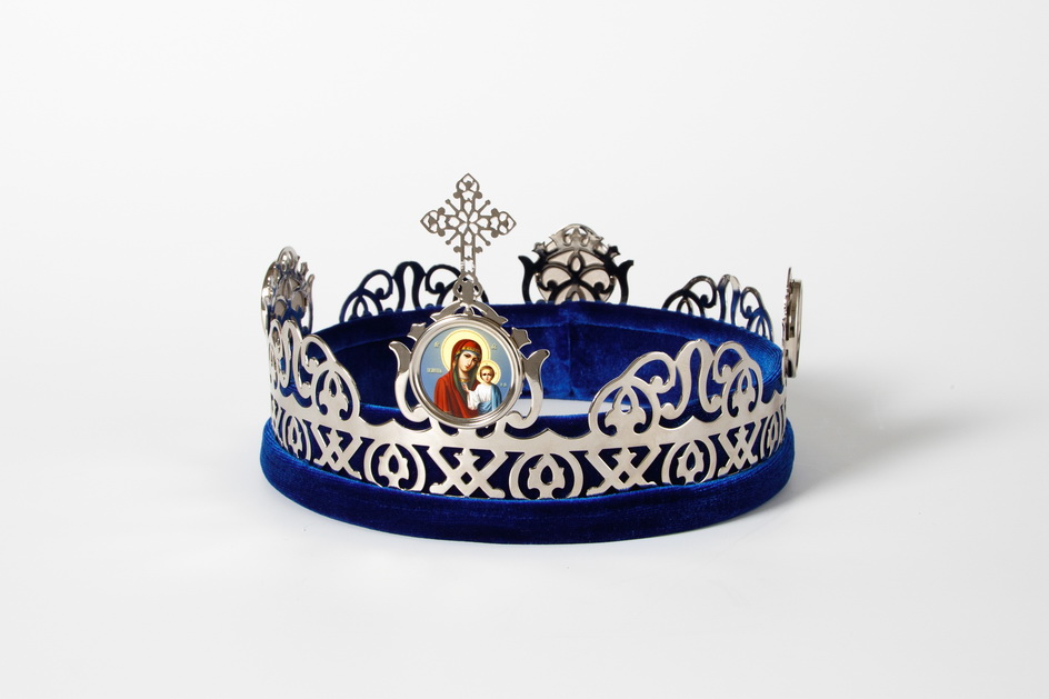 Данные венцы имеют никелевое покрытие. На благородном серебристом фоне особенно ярко выделяются иконы Христа (на венце жениха) и Божией Матери (на венце невесты).