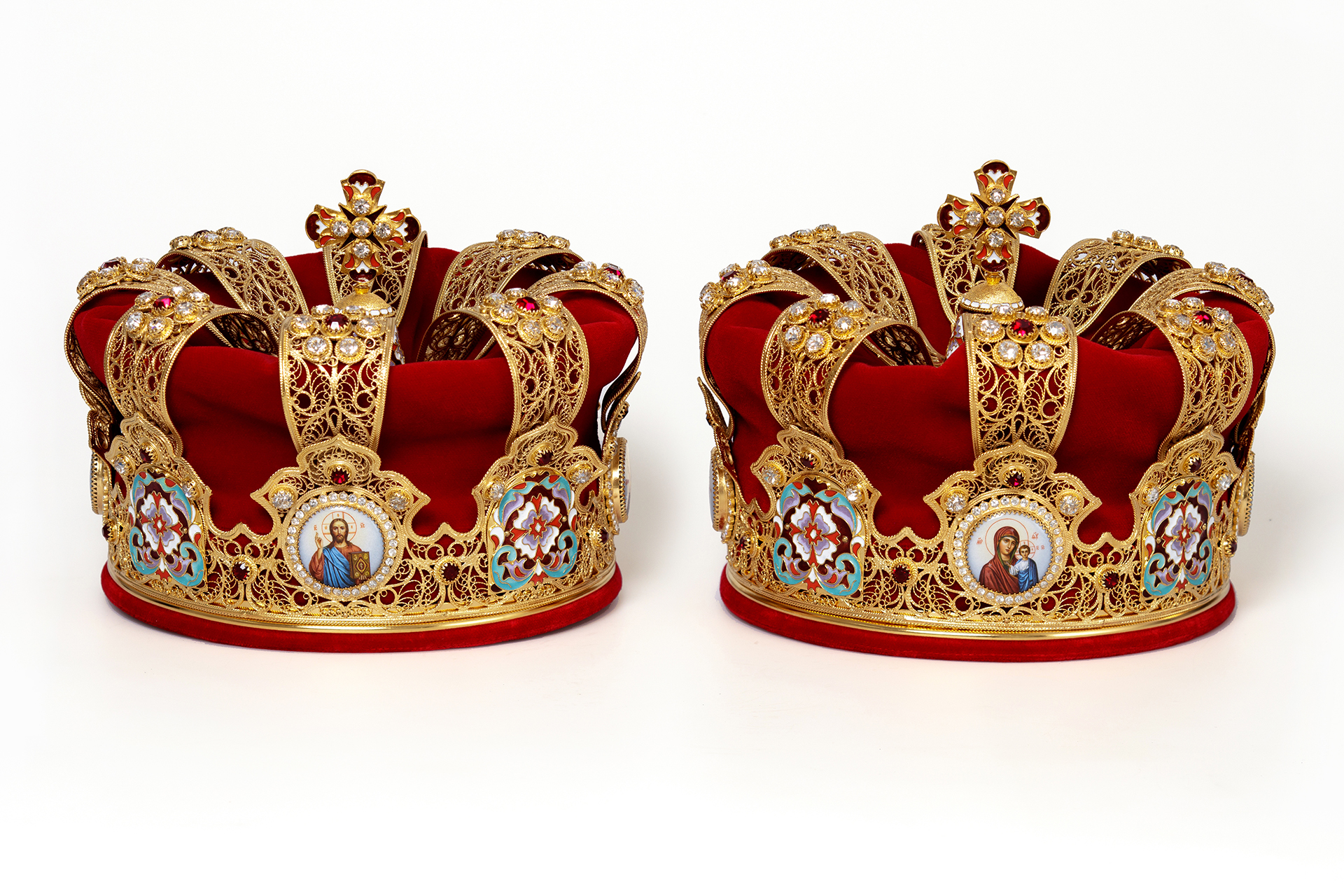 Венцы венчальные №5 / пара / филигрань, эмаль, деколь / золочение