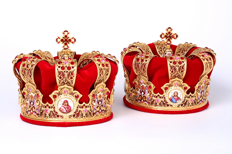 Брачные венцы имеют очень богатую символику. Они символизируют и царское достоинство Адама и Евы, и мученические венцы, и ожидающее супругов Царство Небесное.