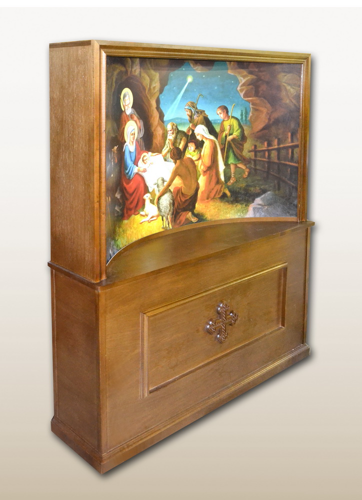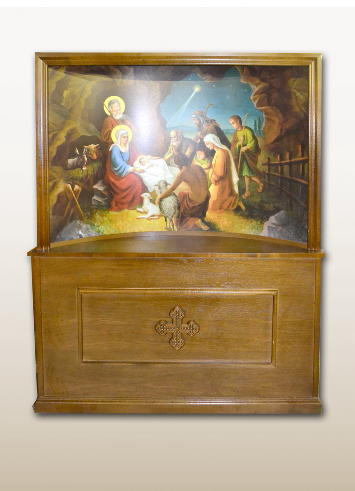 Основной материал - шпонированный МДФ. Изображение - печать на пластике. Крест резной дуб.