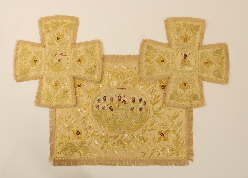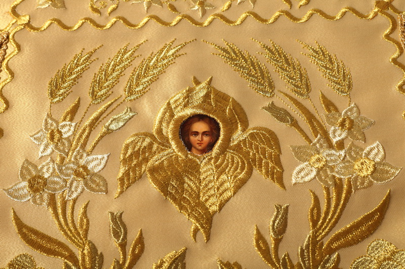 Декоративный элемент - автоматическая вышивка, живописные лики, бахрома.