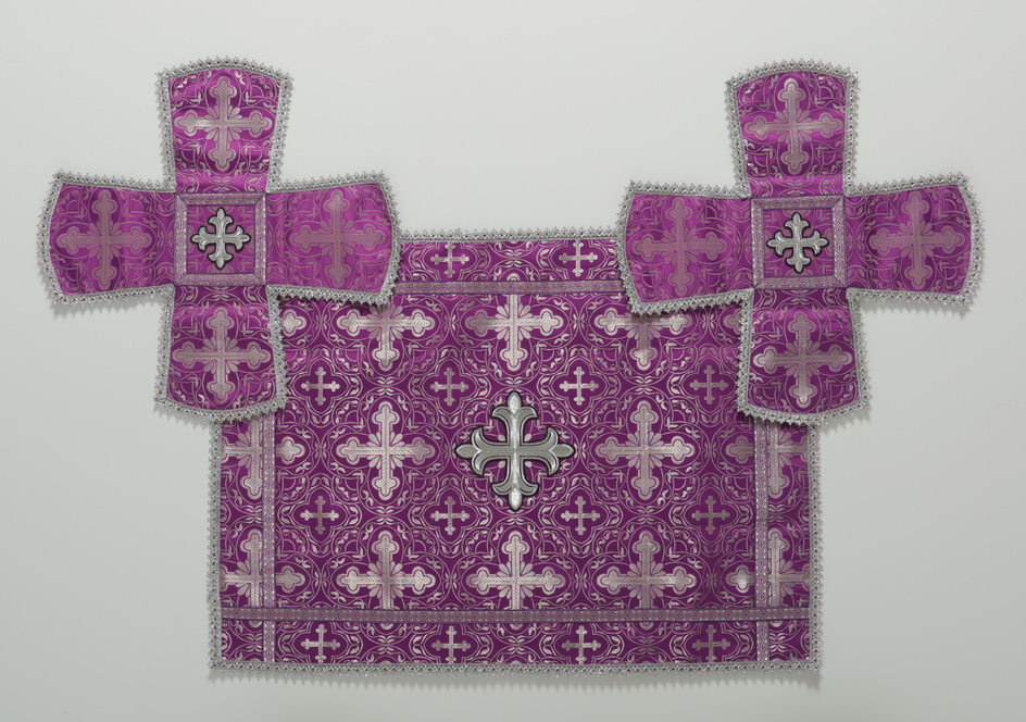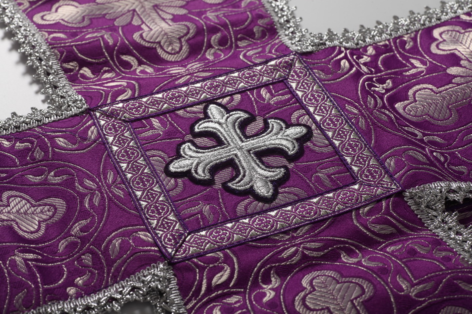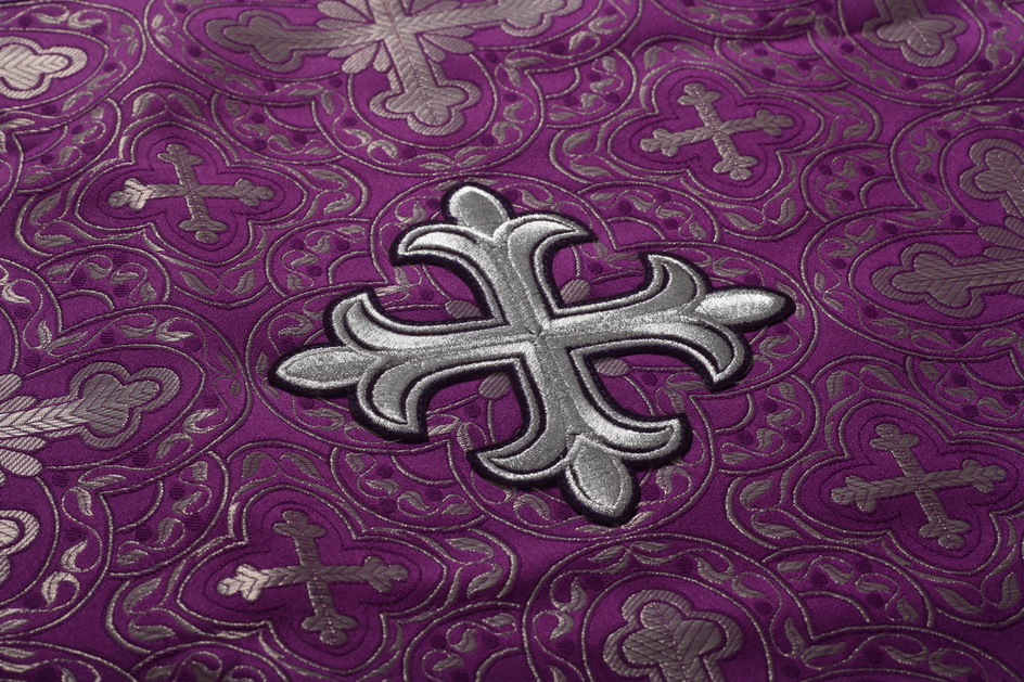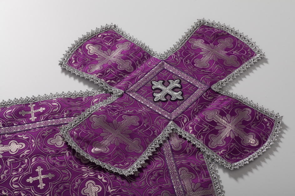 Декоративный элемент - крест (автоматическая вышивка), бахрома.