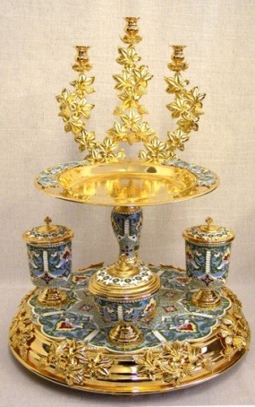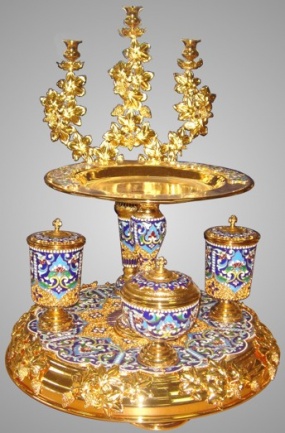 Поскольку литийница используется на литии – особой части Всенощного бдения, совершаемой только накануне больших праздников, – то момент ее выноса из алтаря имеет особую торжественность. Позолоченная литийница с узорчатым трехсвечником, обвитому листьями, станет украшением богослужения.