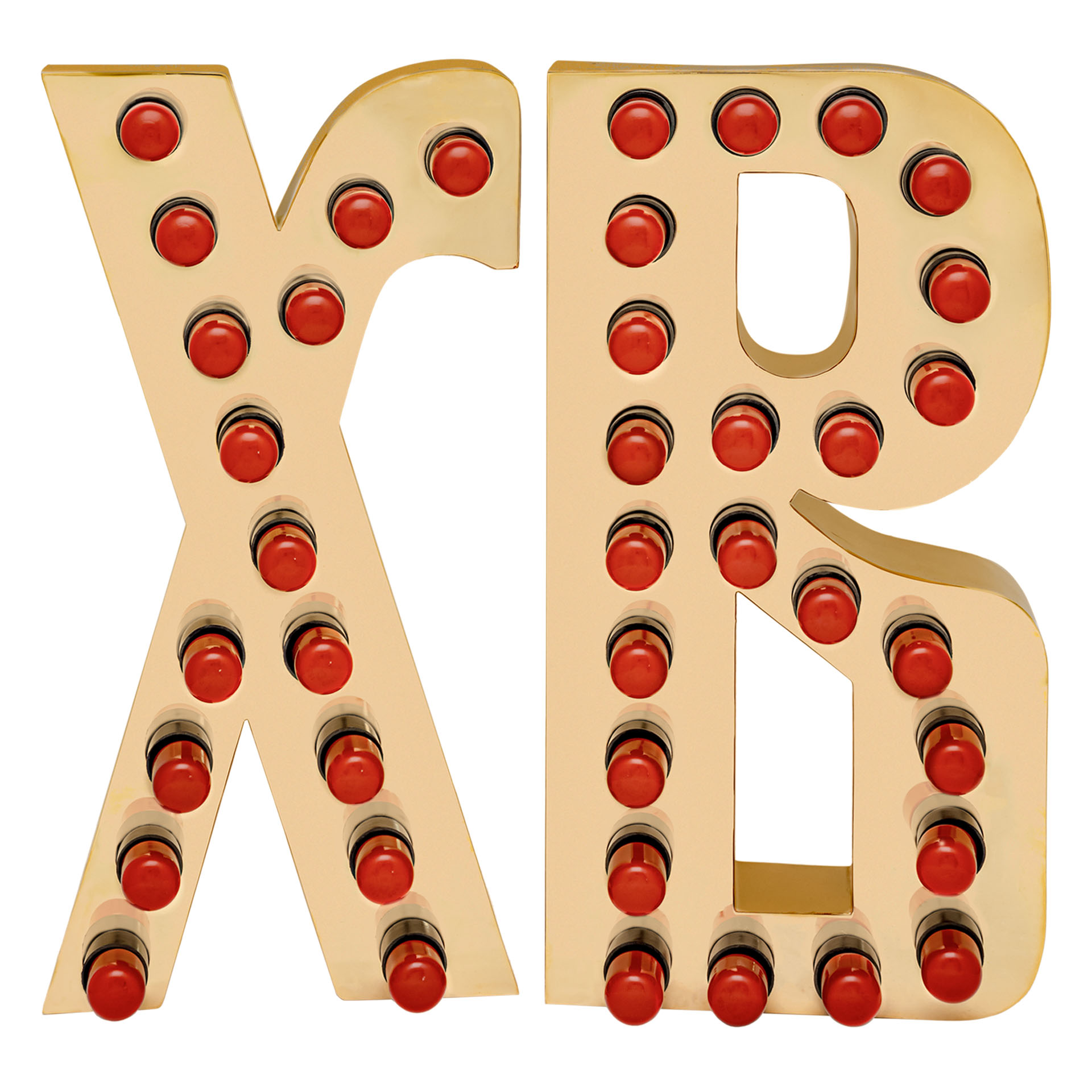 Данная пасхальная вывеска состоит из двух золотых букв «Х» и «В», за которыми скрывается пасхальное приветствие «Христос Воскресе». Сделанные из латуни, покрытые позолотой и украшенные красными лампочками, буквы сразу привлекут к себе внимание прихожан и сообщат радостную весть о приближающемся празднике Пасхи. Наверху каждой буквы есть петли, за которые их удобно будет повесить. К буквам прилагаются 42 лампочки типа миньон Е-14 на 220v.