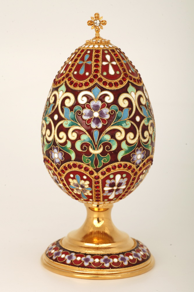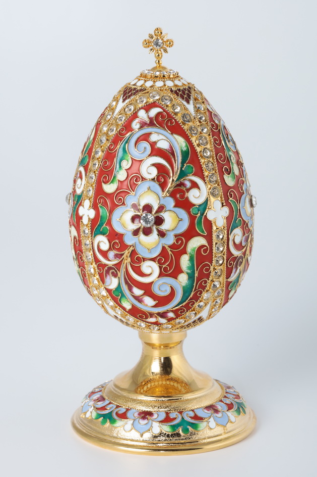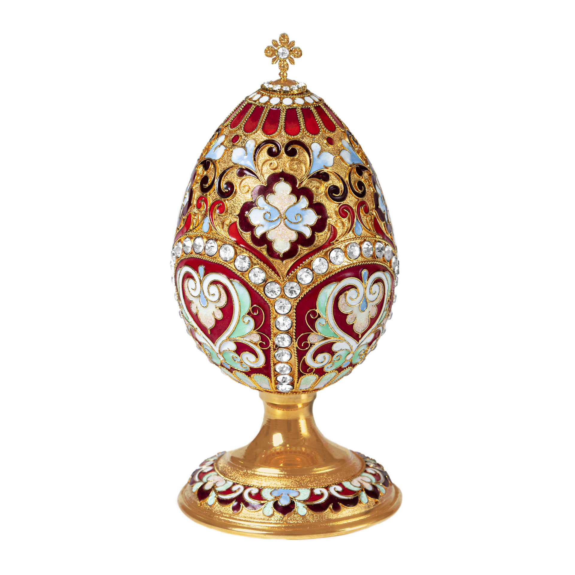 Яйцо пасхальное филигрань, эмаль, камни на подставке / золочение