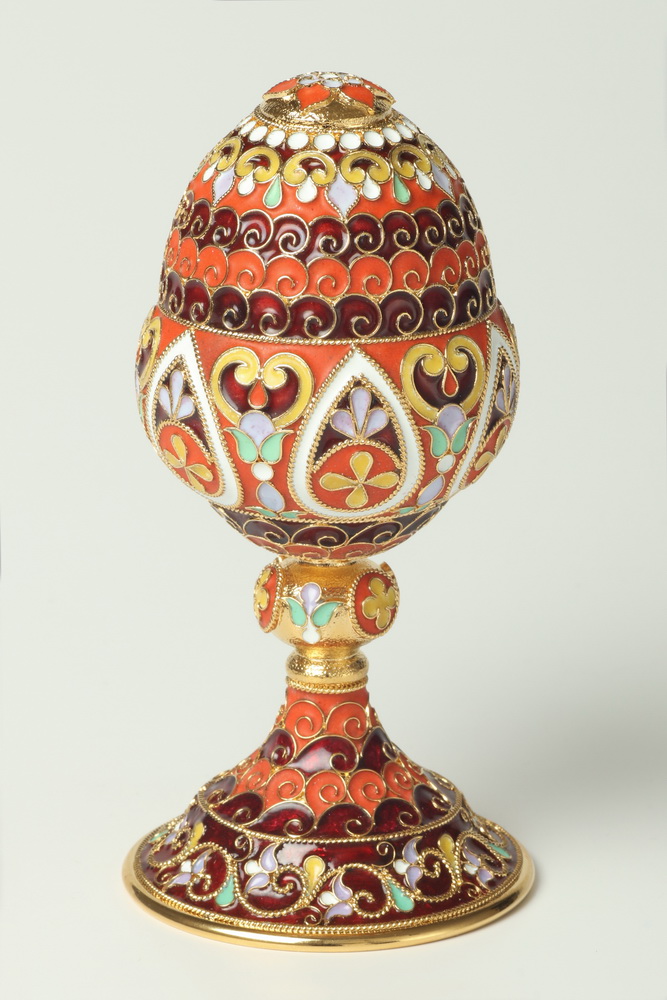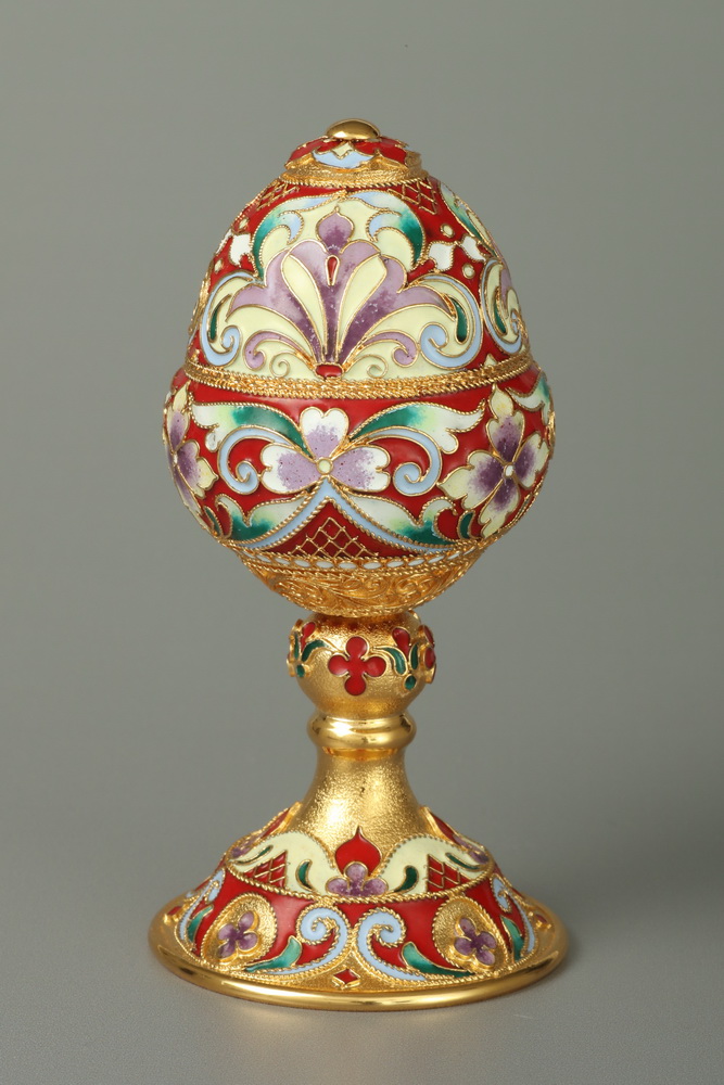 Яйцо пасхальное филигрань, эмаль на подставке №8 / золочение