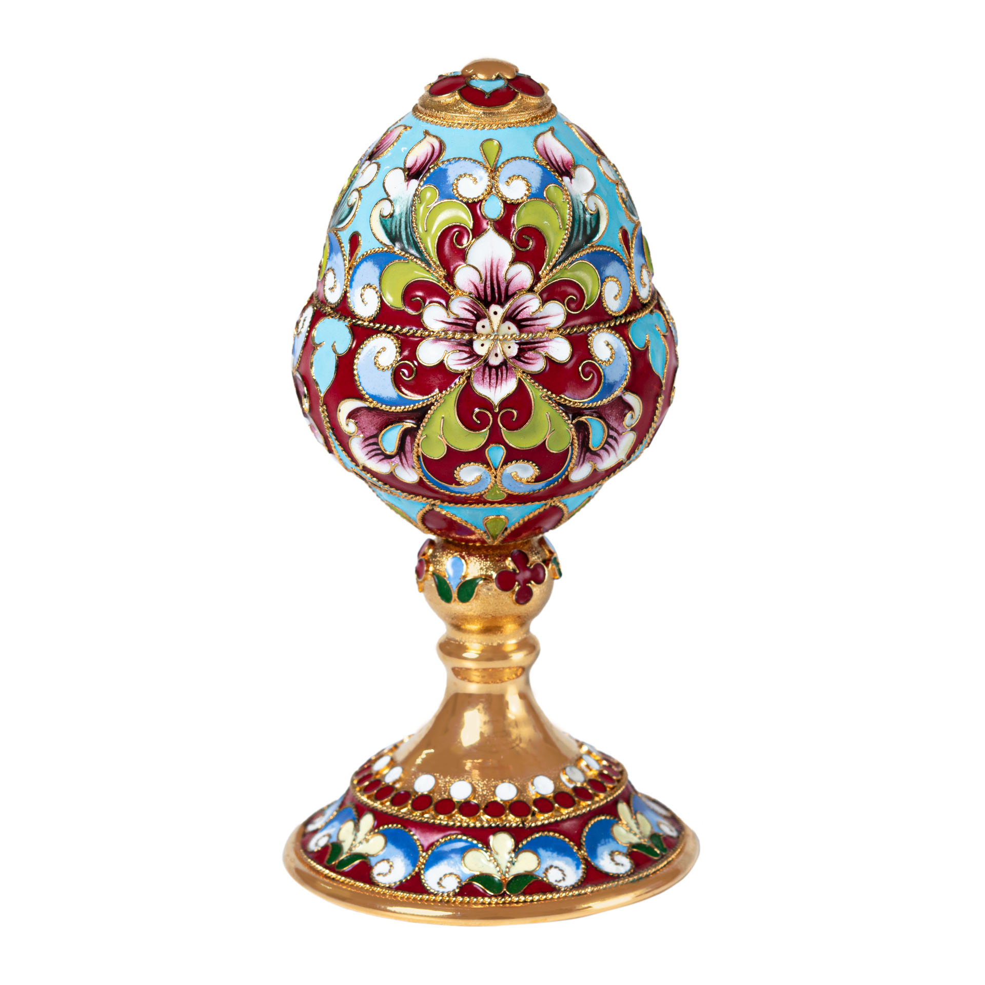 Яйцо пасхальное филигрань, эмаль, роспись на подставке №8 / золочение