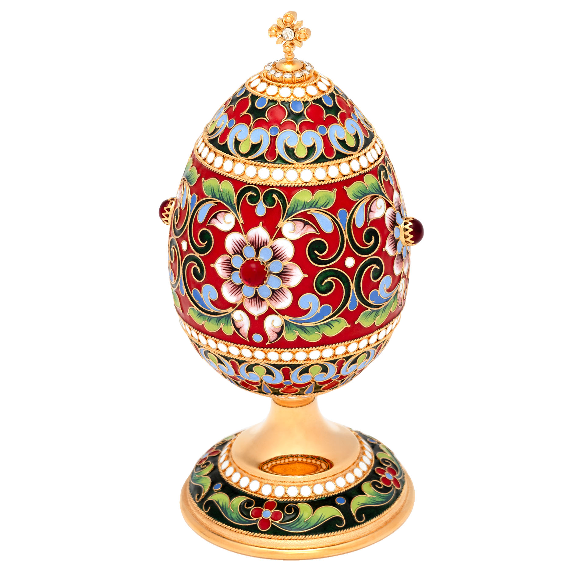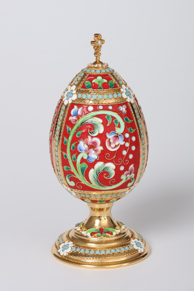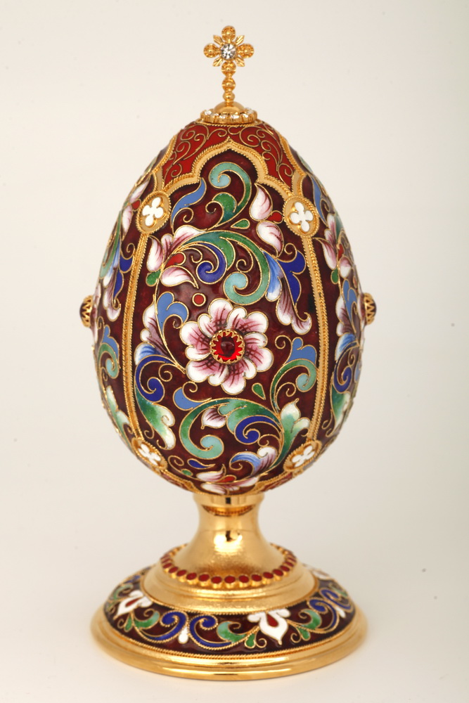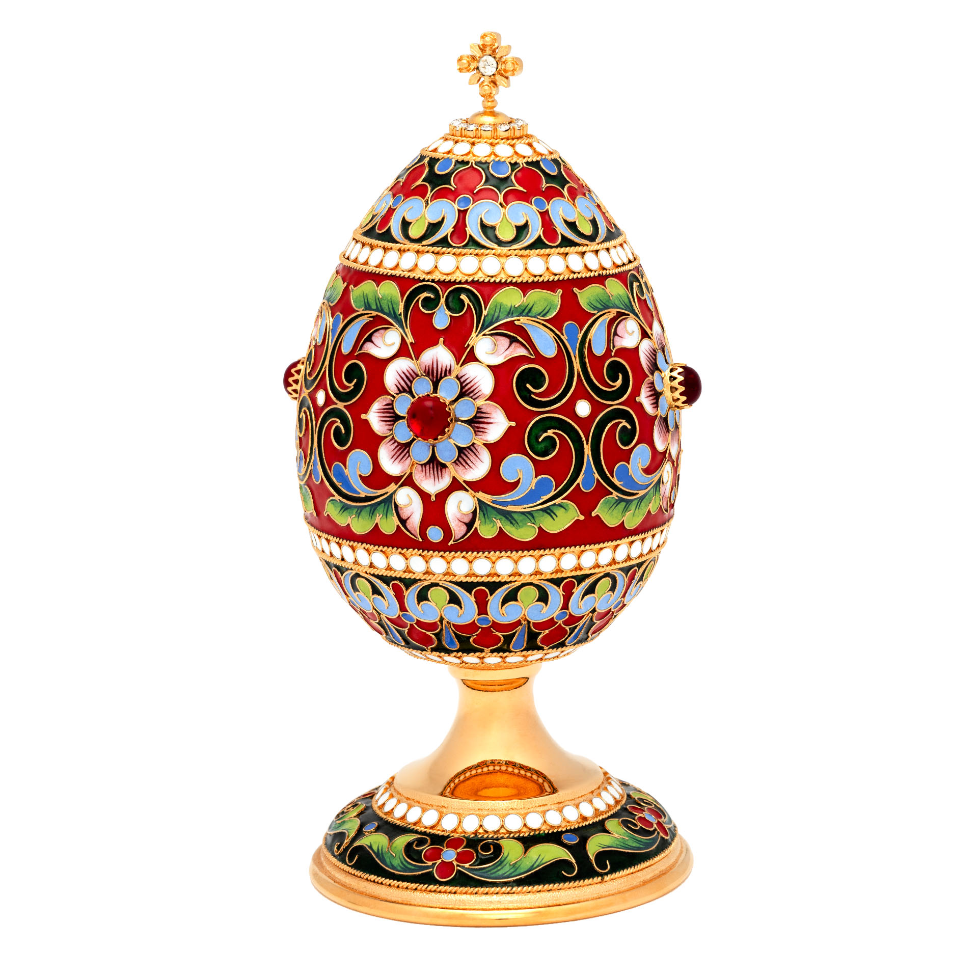 Яйцо пасхальное филигрань, эмаль, роспись на подставке / золочение