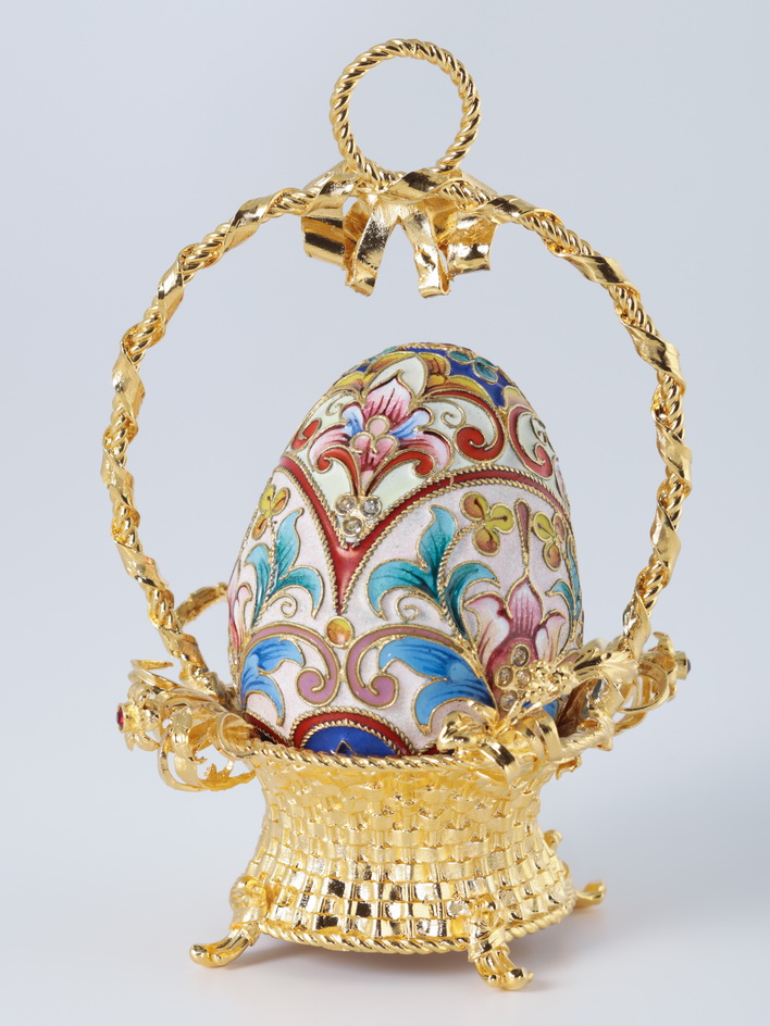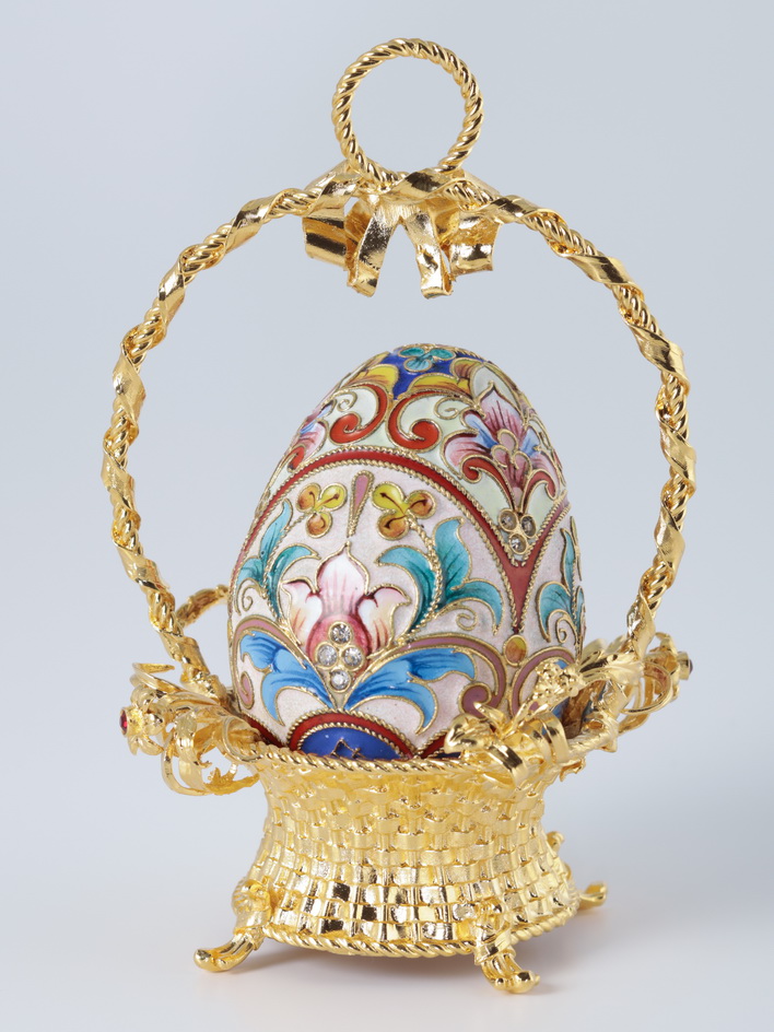 Яйцо пасхальное филигрань, эмаль, роспись в корзинке / золочение