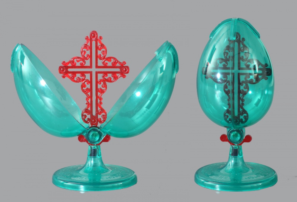 Яйцо Пасхальное пластмассовое на подставке зеленое