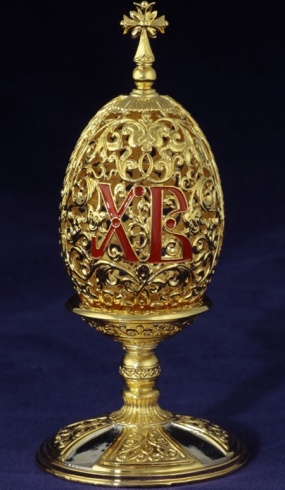 Яйцо пасхальное сувенирное литое №3 на подставке золочение