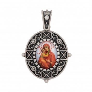 Икона нательная №29 серебро деколь, эмаль Владимирская БМ (УИН)