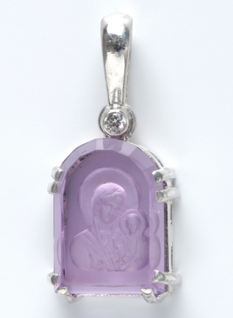 Икона нательная №18 инталия арка 10*14 аметист серебро Казанская БМ (УИН)