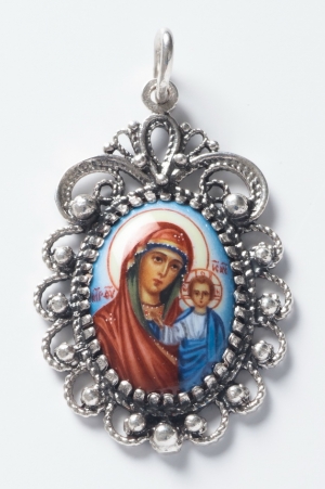 Икона нательная №21 финифть серебро Казанская БМ (УИН)
