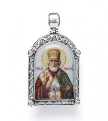 Икона нательная №35 серебро деколь Николай Чудотворец (УИН)
