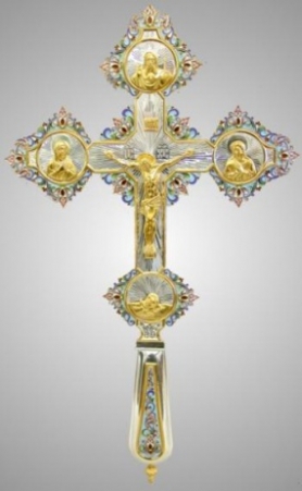 Крест напрестольный водосвятный финифть, филигрань, эмаль серебро (УИН)