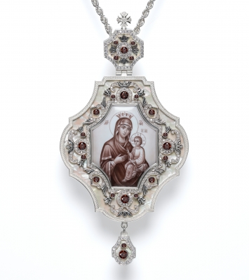 Панагия №200 / Фианиты перламутр серебро Скоропослушница БМ (УИН)